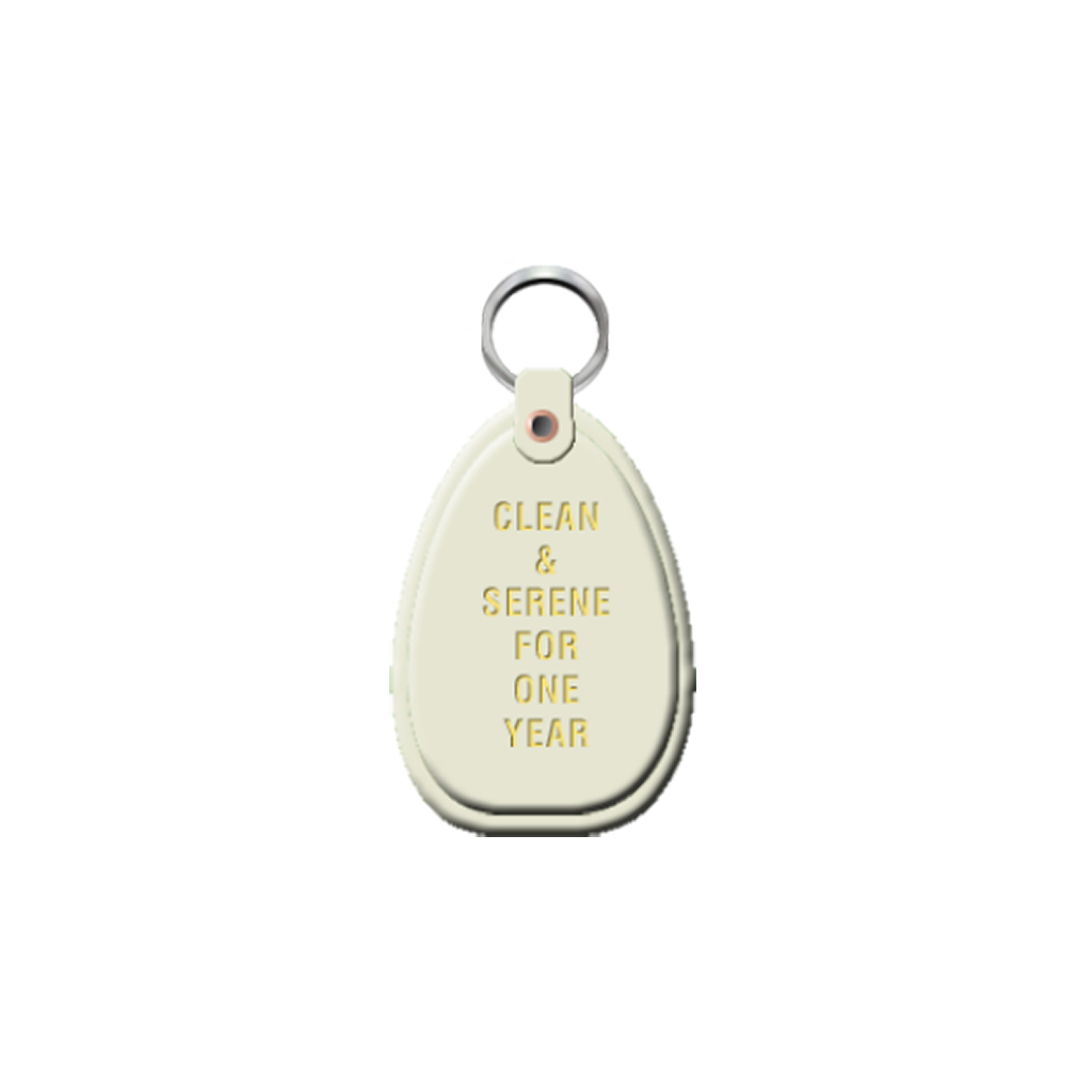 Symboliczny brelok upamiętniający czas czystości. Na breloku widnieje logo NA oraz czas czystości.